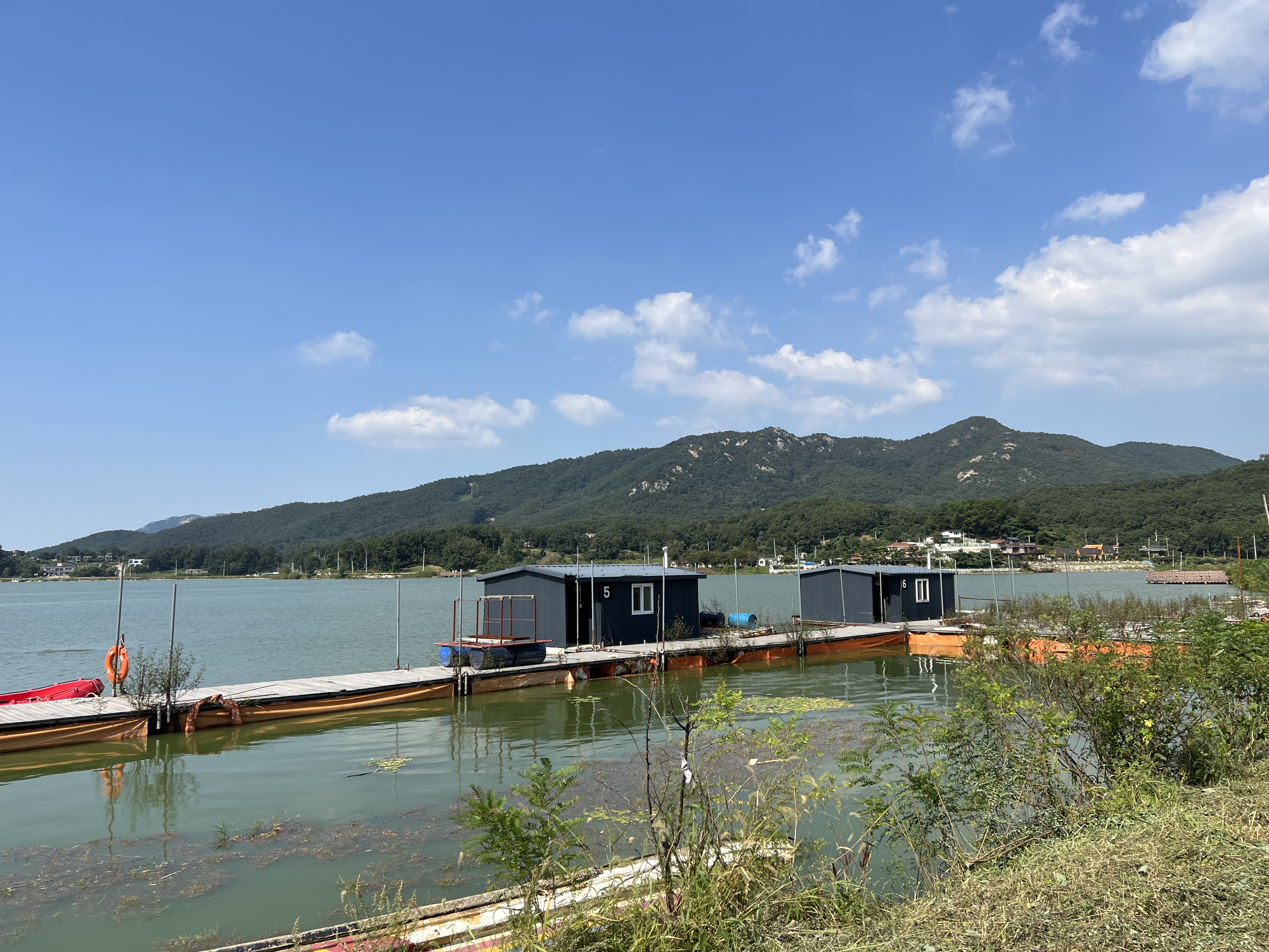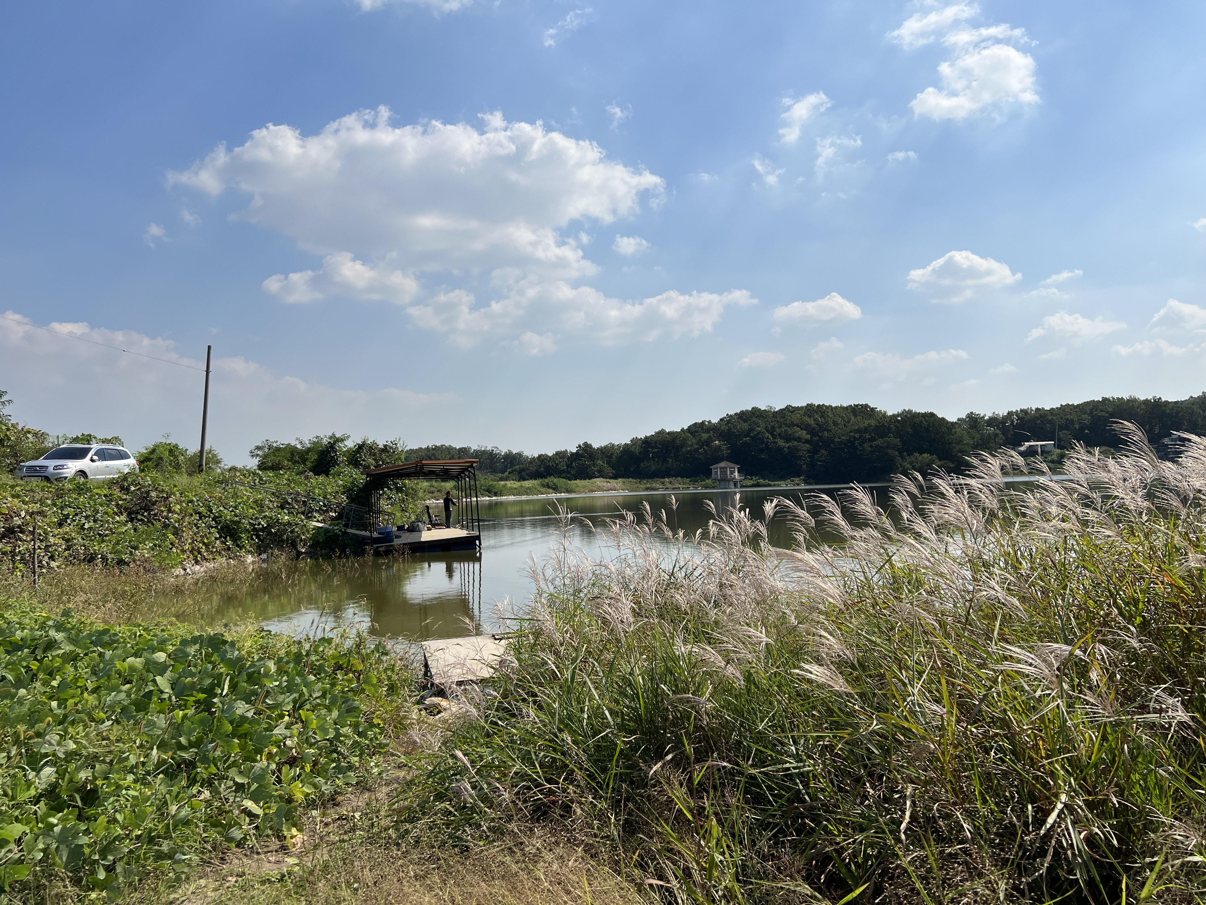 이곳은 개인 좌대도 있지만 여럿이 낚시를 할 수 있는 좌대도 여럿 있었습니다. 지금 보이는 곳이 들어가서 초입에 있는 좌대인데 차량 진입이 상당히 어려운 곳이었습니다. 저는 사륜구동 차량을 가지고 진입했는데도 진입로가 너무 나빠서 올라올 때 애를 먹은 기억이 나네요.