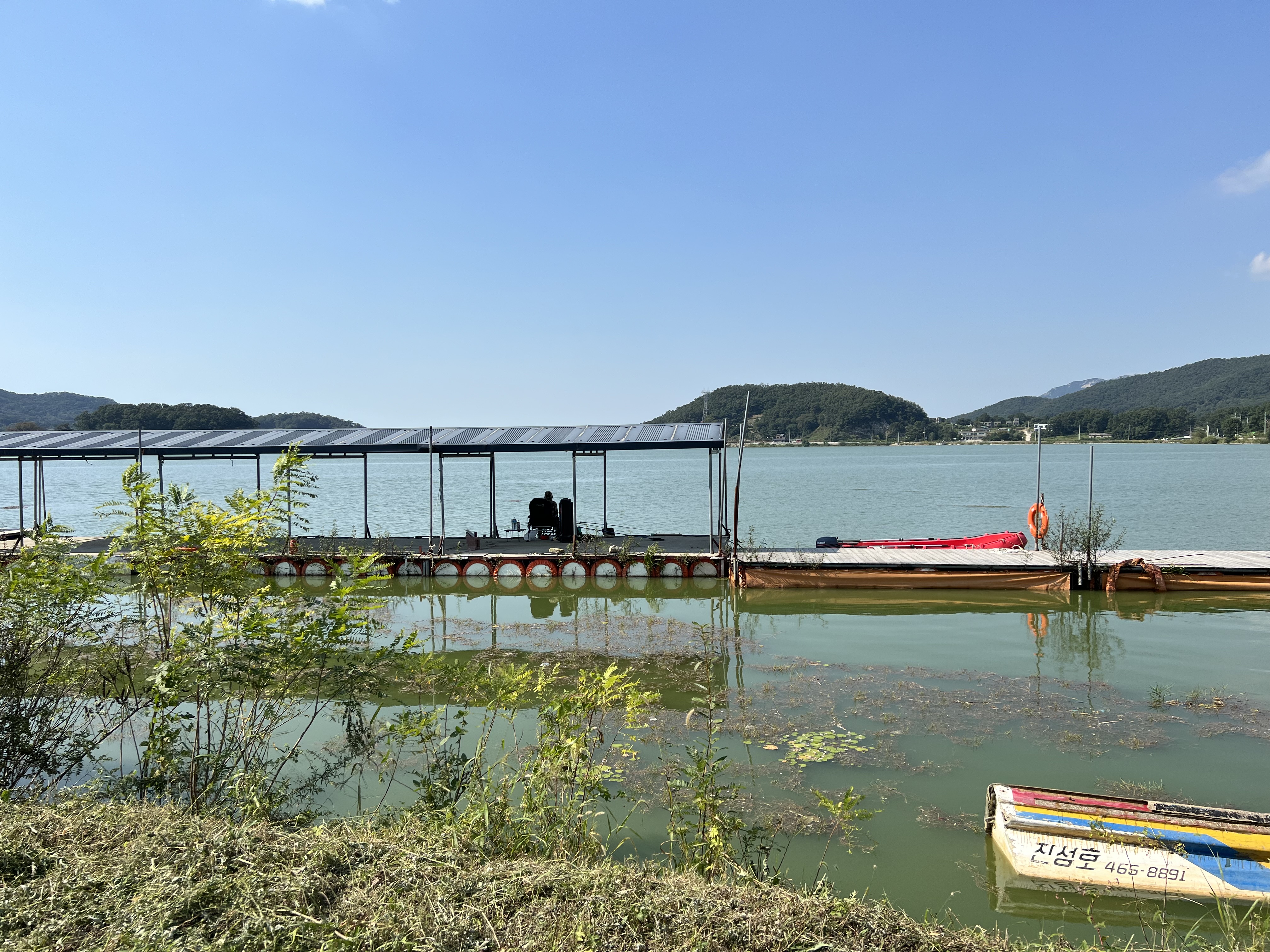 내가저수지 관리소 앞 잔교 좌대입니다. 이곳은 몇 분 정도 낚시는 하고 있었지만 조황은 그리 좋지 않았네요.